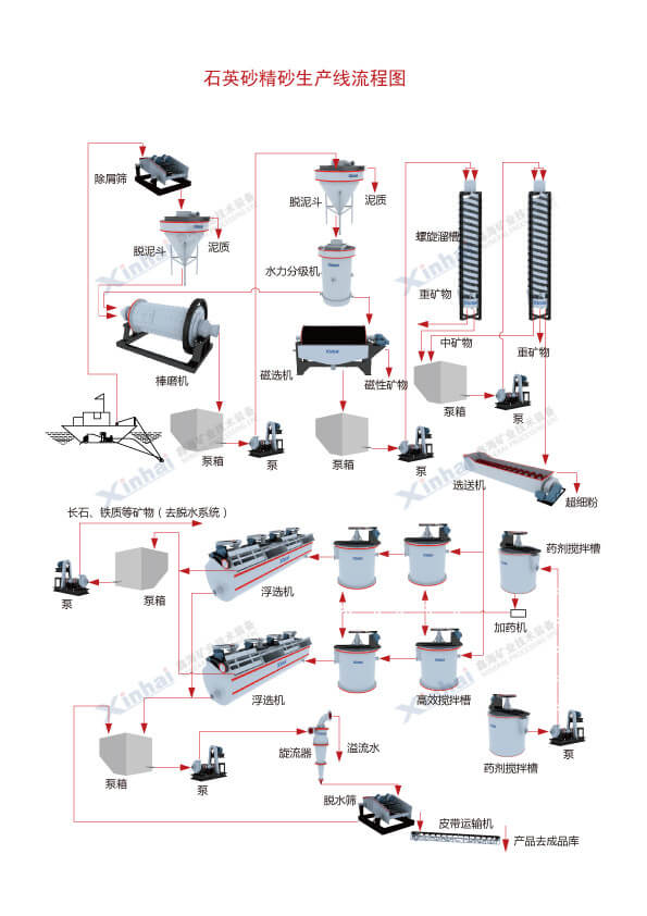 Before Screening and classification – dry magnetic separation – dosing strong scrubbing - flotation SiO2≥97.62%,Fe2O3≤0.24,Al2O3≤1.11%