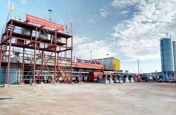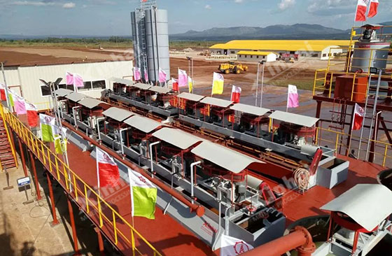 In this project, 80% ores are powdery clay ore. The water content of raw ore is 25-30%. On the one hand, Xinhai Mining solves the block and feeding problems of powdery clay ore. On the other hand, Xinhai Mining applies gravity separation and cyanidation process, strengthen the gravity separation and grinding process. A part of gold particles are recovered in gravity separation, reducing the gold grade to leaching operation. Therefore the agent consumption amount is reduced, and so is the processing production cost.