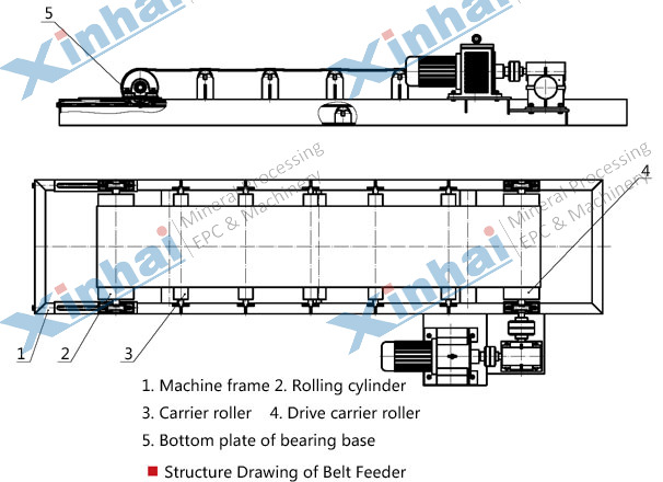 Belt feeder is widely used in metallurgy, mineral processing, building materials, coal, hydropower and other departments for transporting 0.5~2.5t bulk density materials. According to the technological requirements, it can be used for a single delivery, and can also company with other equipment to form a horizontal or inclined conveying system to meet the needs of different production line.