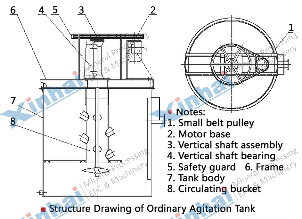 Agitation tank is mainly applied in slurry stirring before floatation, chemical and construction industry, cyanide chemical plant, sewage treatment plant, and coal plant etc.
